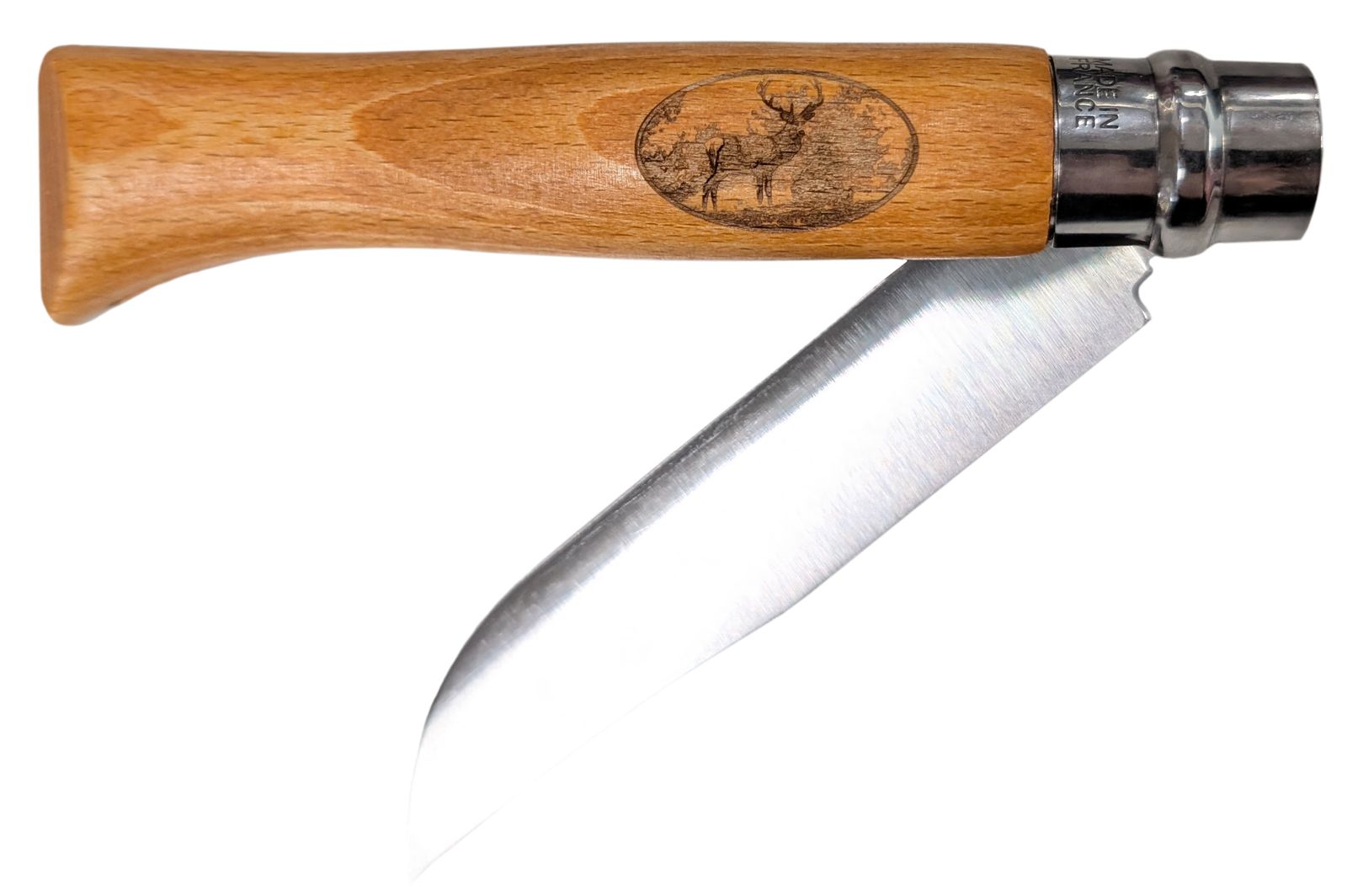 Opinel Messer, Größe 12, Carbonstahl mit Hirschgravur Individuell by MTM