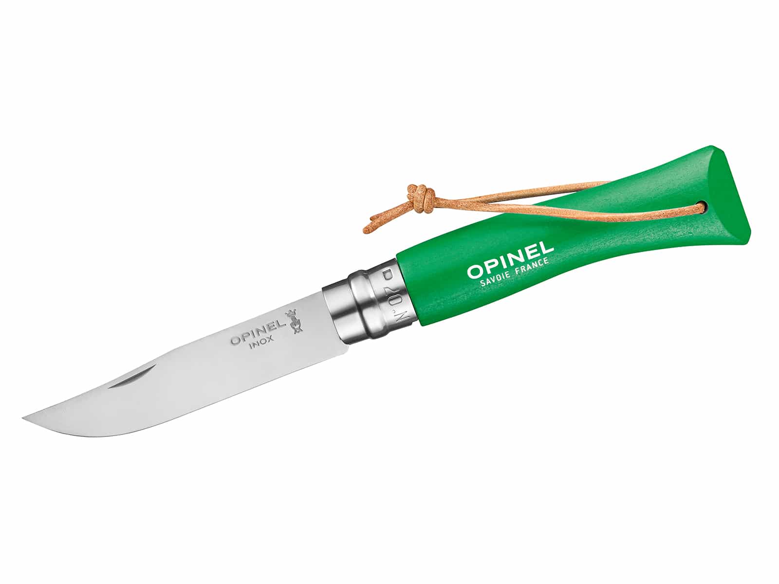 Das Opinel in Größe 7 der Serie Colorama Sport kommt in 5 hellen, freundlichen Farben. Sie strahlen förmlich Freude und Optimismus aus. Die farbenfrohen Messer verfügen über eine Lederkordel.