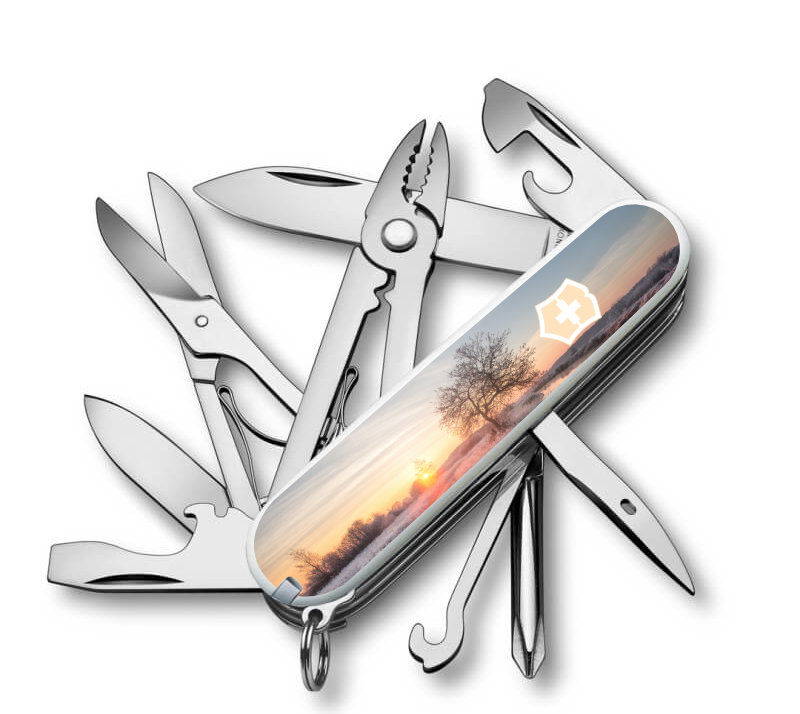Mit Ihrer Wunschgravur wird dadurch aus dem Victorinox Deluxe Tinker Kalte Landschaft by MTM Ihr einzigartiges und ganz besonderes Arbeitsgerät, Erinnerungsstück oder ein persönliches Geschenk.