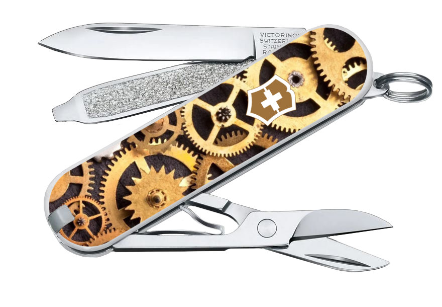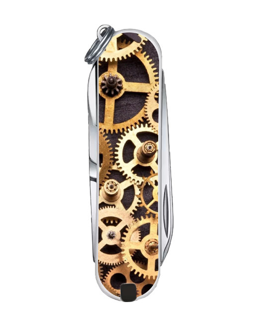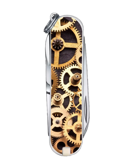 Erleben Sie die perfekte Kombination aus Tradition und Innovation mit dem Victorinox Classic SD Clockwork Design – ein Taschenmesser, das Ihnen ein Leben lang treu zur Seite steht.